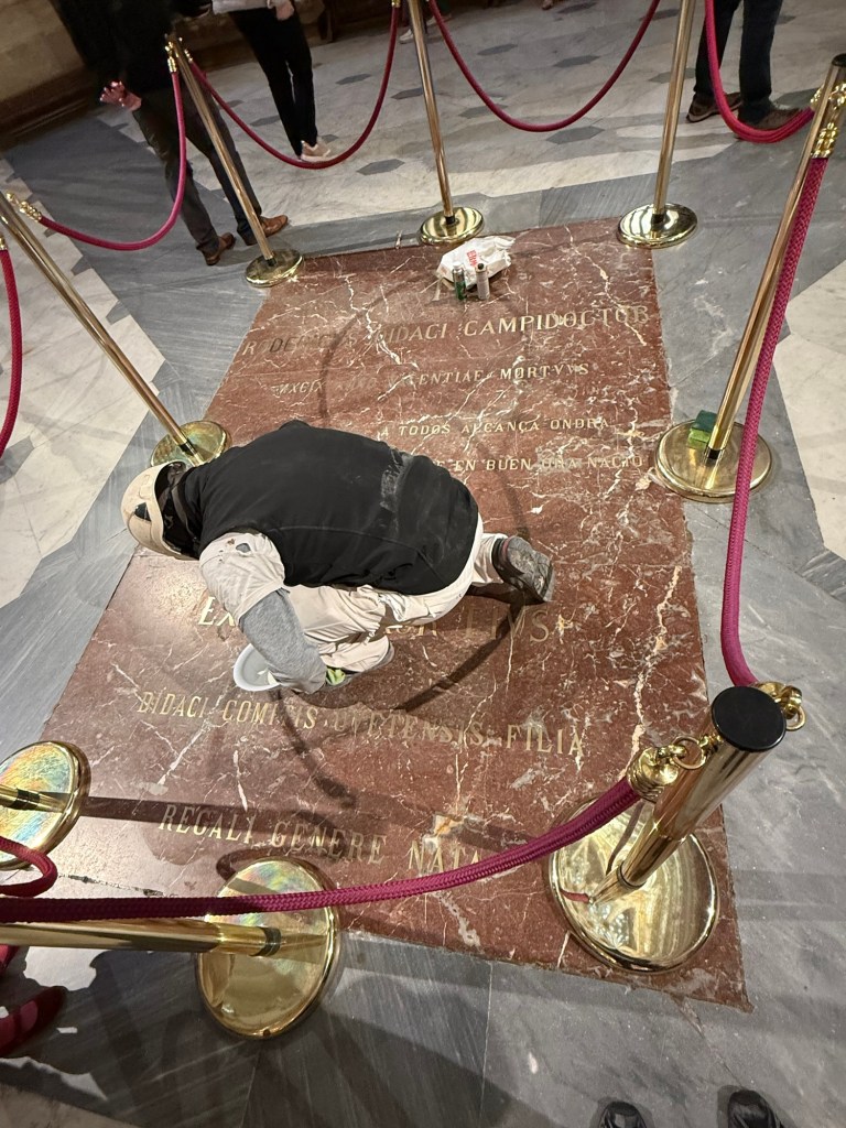 On entre dans la ville en passant la porte Arco de Santa Maria. Parmi les personnages on trouve … le CidEt la voilà, sa majesté la cathédrale.