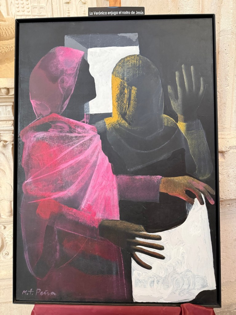 Les bâtiments nous rappellent toujours la fierté de la splendeur historique de l’Espagne. La moindre petite église croule sous les dorures. En ce week-end pascal, les fleurs blanches se rajoutent a la splendeur.