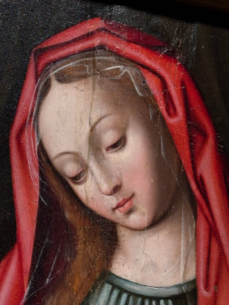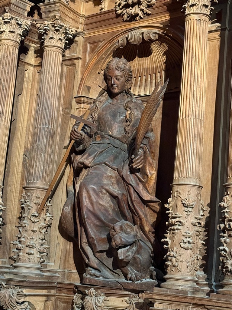 J’en profite pour entrer. L’église est partagée entre deux zone. La partie somptueuse, éclairée ou je suis et une partie sombre derrière un claustrât de bois d’où j’entends des prières de femmes.