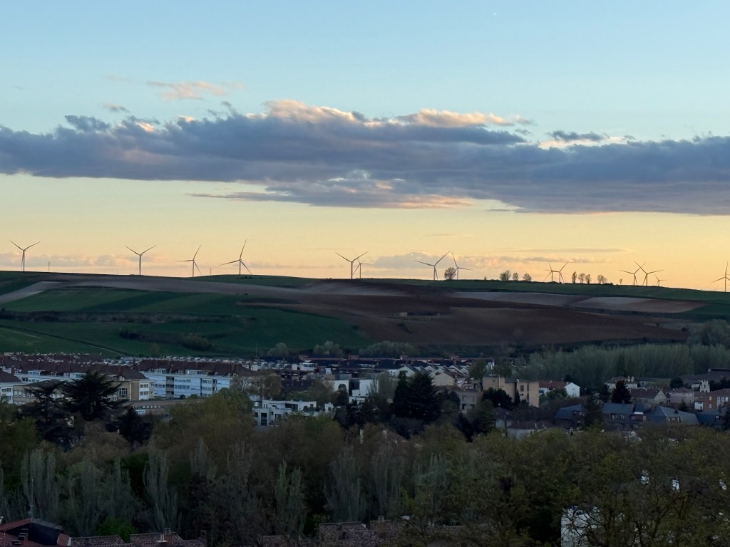 Vu de ma chambre dimanche soir. La-bas, au loin, le plateau de la Mezeta qui m’attend.