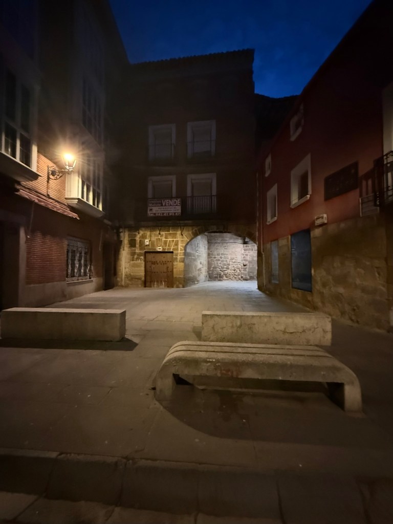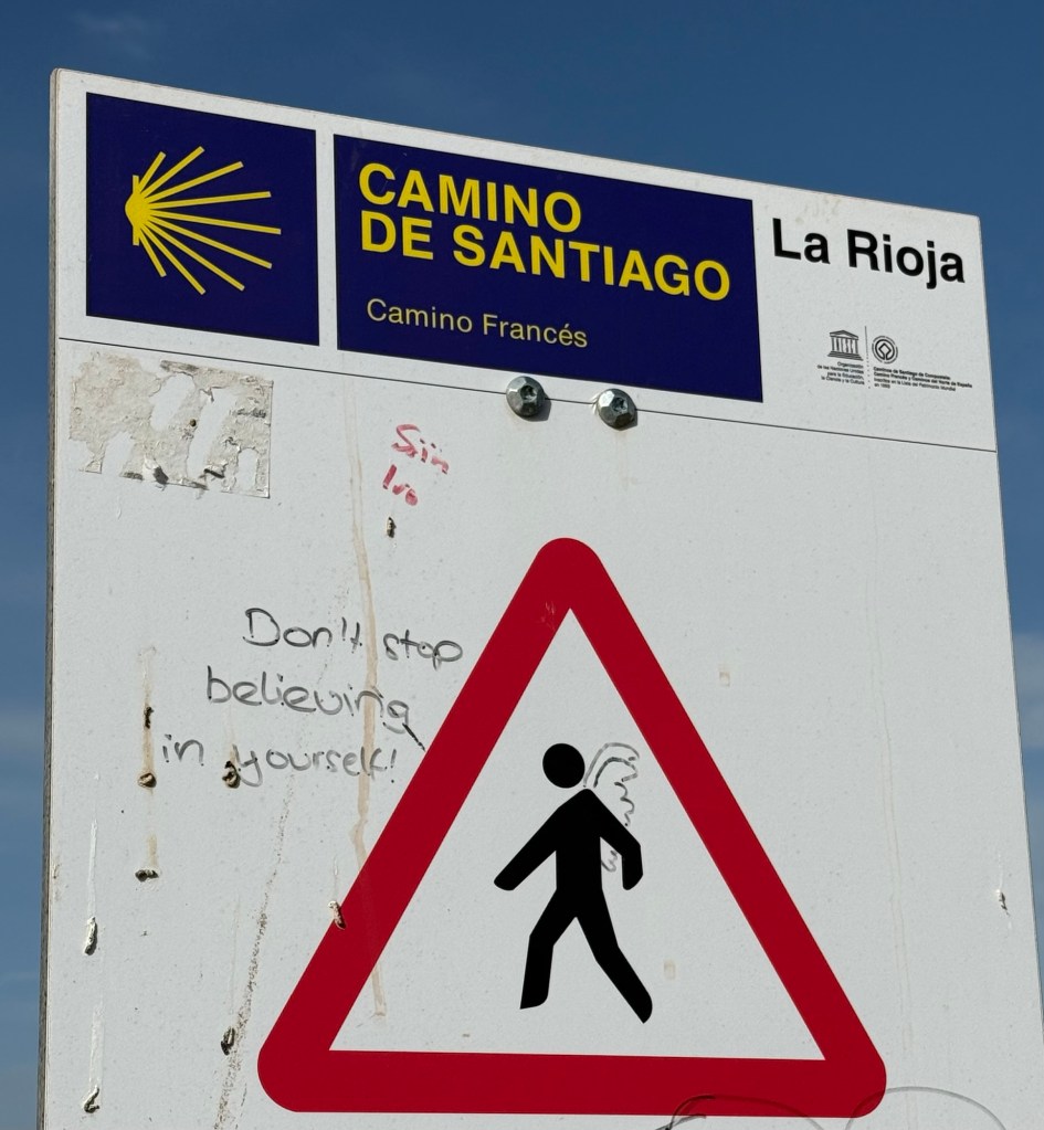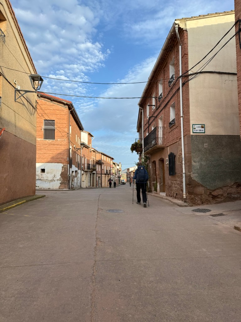 Pas d’église ni de magasin mais une Albergue ( bon courage), quelques êtres humains, des panneaux a vendre.
