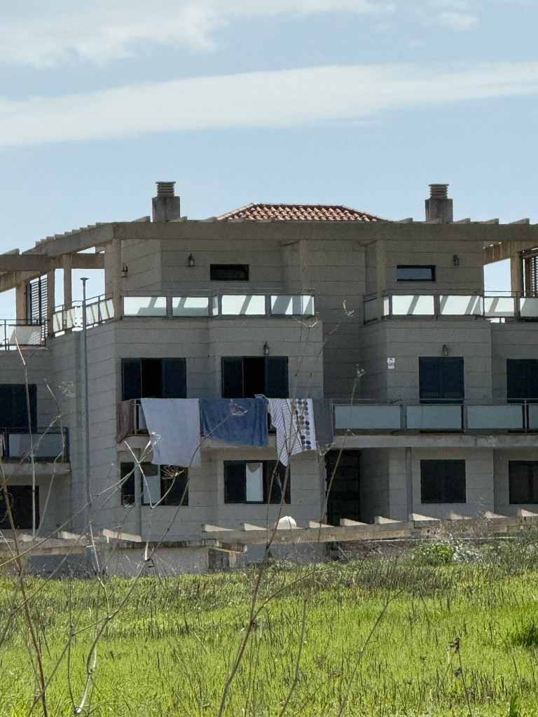 Et la-haut, au sommet de la colline, des bâtiments fantomatiques, sans fenetres.