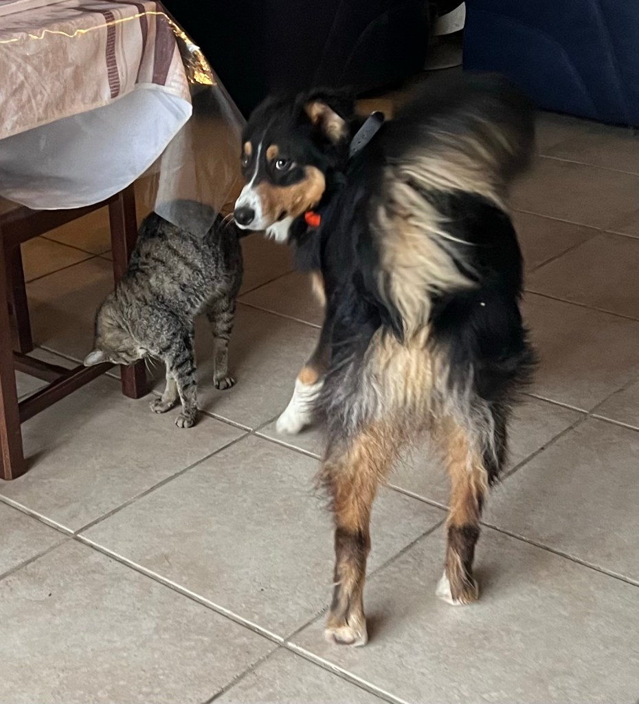 Joli chanteur de 3 ans jouissant d’une grande libérteLe chien et son ami le chat