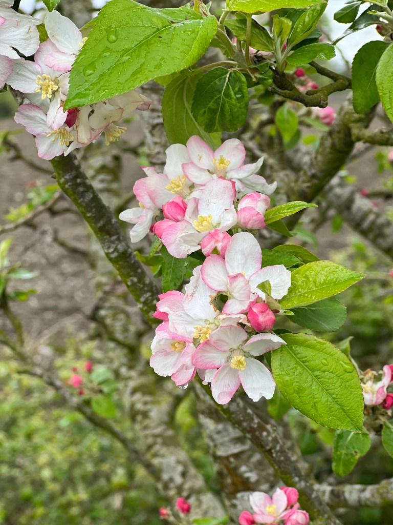 Le printemps pluvieuxAu bord du cheminDélicatesse des fleurs de pommier