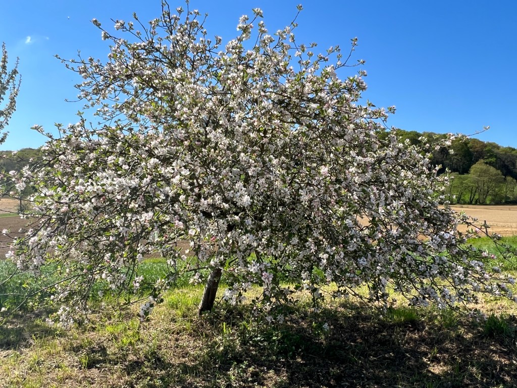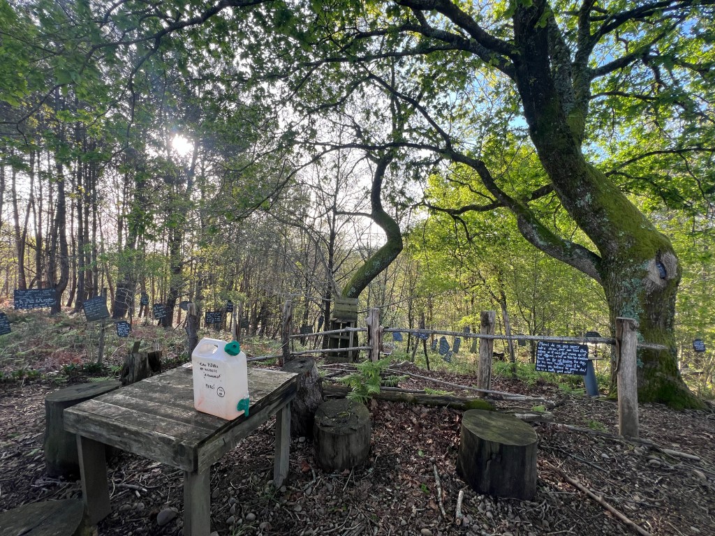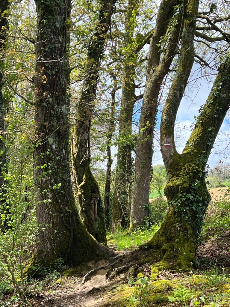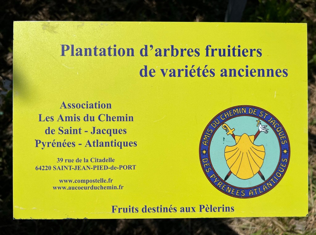 L’arbre est si beau que je sors le téléphone sous une pluie et un vent déchaînes.Une association de pèlerins plante des arbres fruitiers le long du chemin. Sympa !