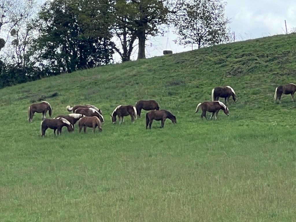 C’est très vert, c’est certain ! C’est vallonné et meme montagneux. Mais surtout il y a des fermes en activité partout ! La campagne bruisse de toute cette vie. Des animaux partout. Des fermes cossues affichent de beaux bâtiments blancs aux bardages rouges