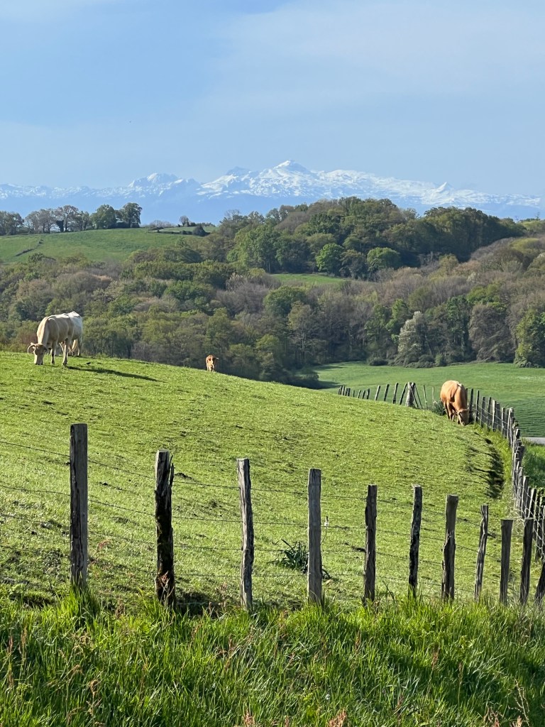 De vallons en collines. Il parait qu’on voit très bien les Pyrénées