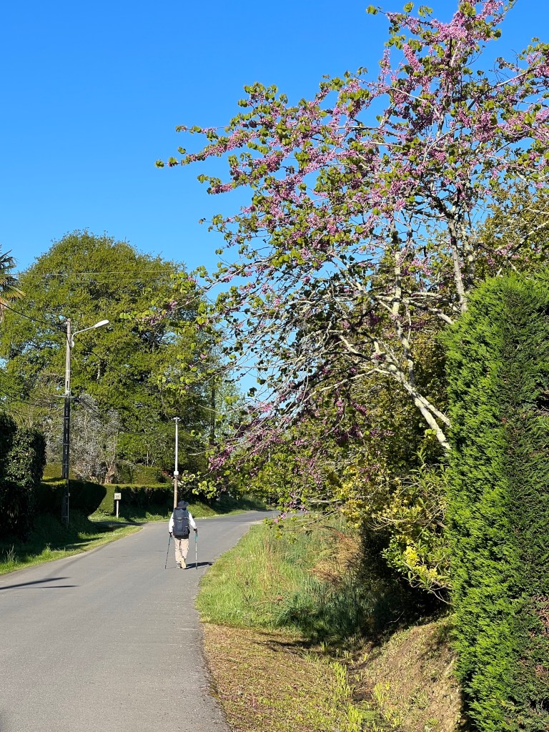 Je vous dois une verite.. en ce mois d’avril, je rencontre plus d’hommes marchant seuls que de femmes. Ils ont souvent moins de 35 ans ou plus de 50 ans. Ils marchent souvent plus de 35 a 40 kilometres par jours et je ne les rencontre qu’un soir.