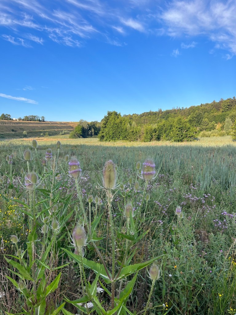 C’est reparti. J’avance d’un bon pas. Les vallons ont laisse place a un riche plateau de cultures. Les longues lignes droites s’étirent devant moi.