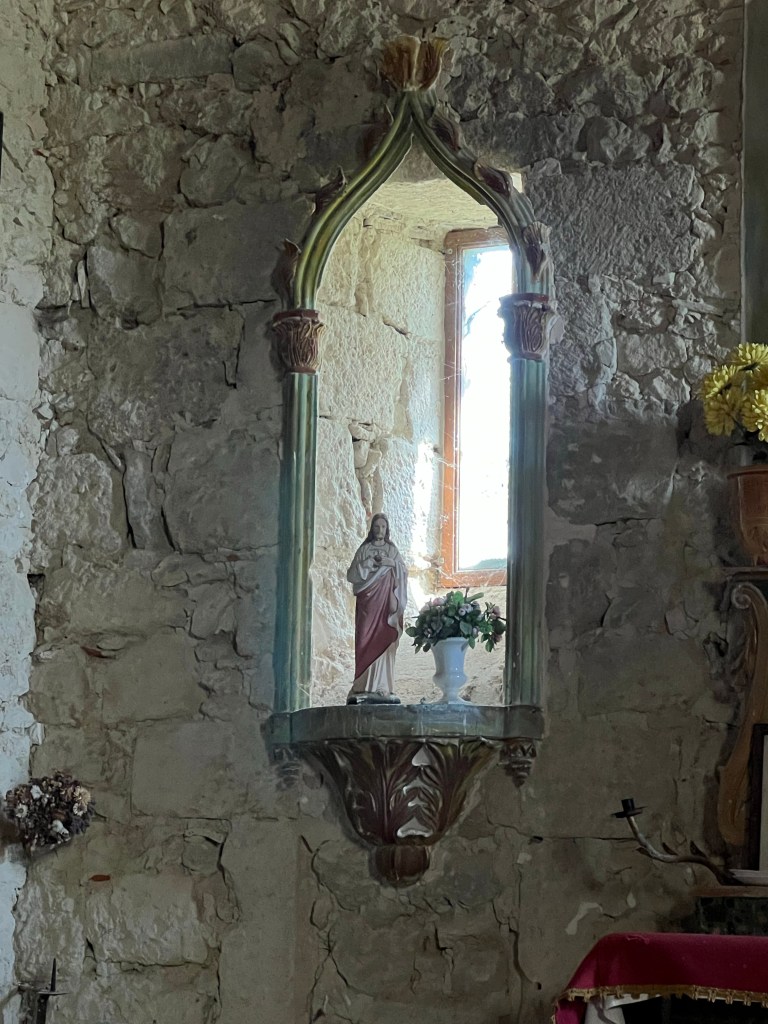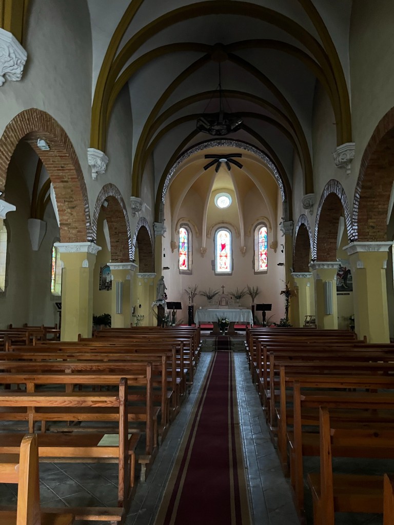 Une eglise toute simple. Un oiseau s’est installe on ne sait ou mais son chant resonne dans l’eglise. Moment parfait.