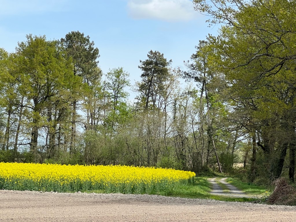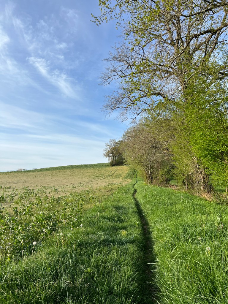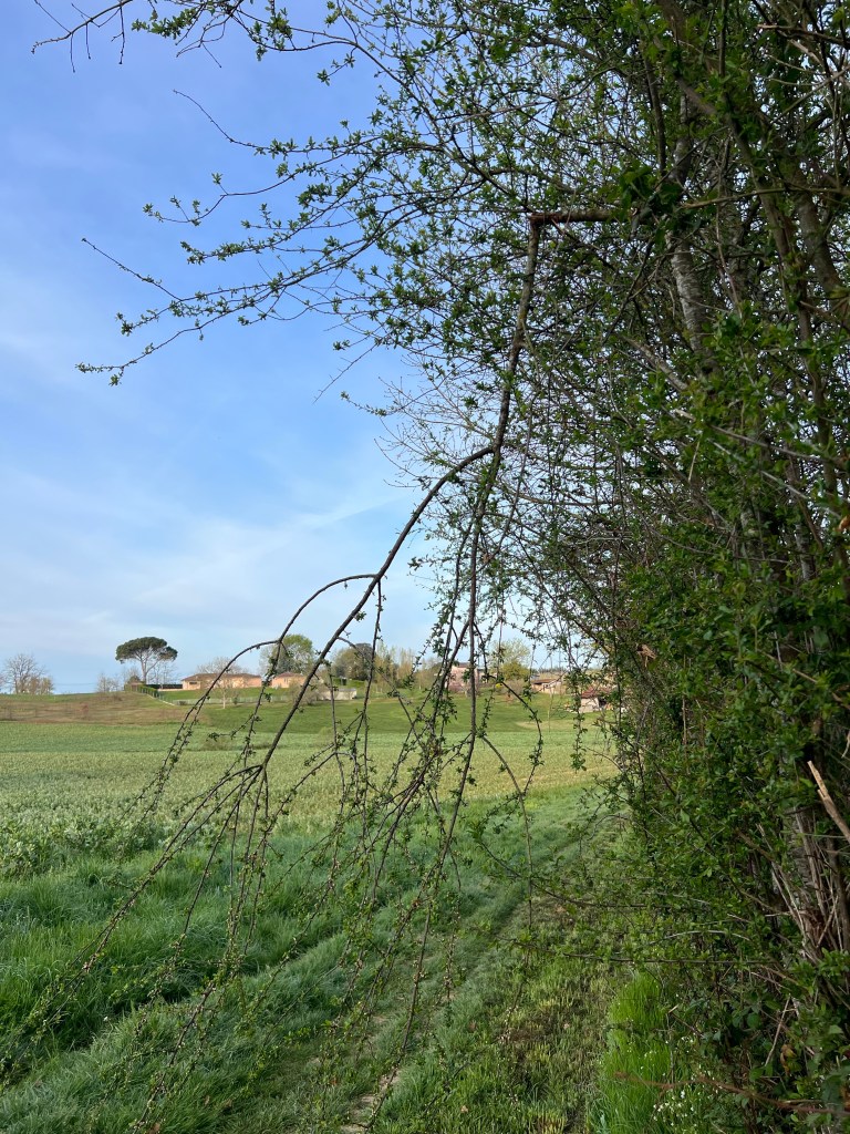 Me voila repartie. Je pourrais etre dans mon Ardeche familiale. Rien n’est plat. Les petites montées s’enchainent aux petites descentes et éreintent mon corps mal habitue aux inlassables lignes droites.