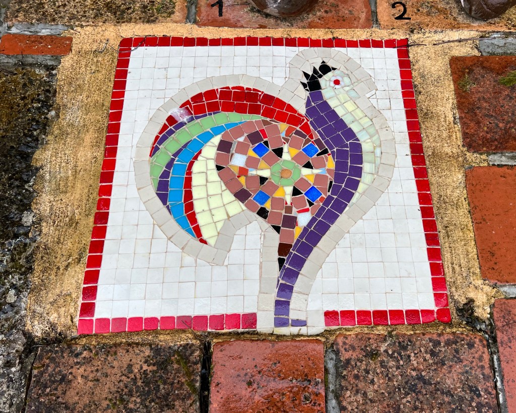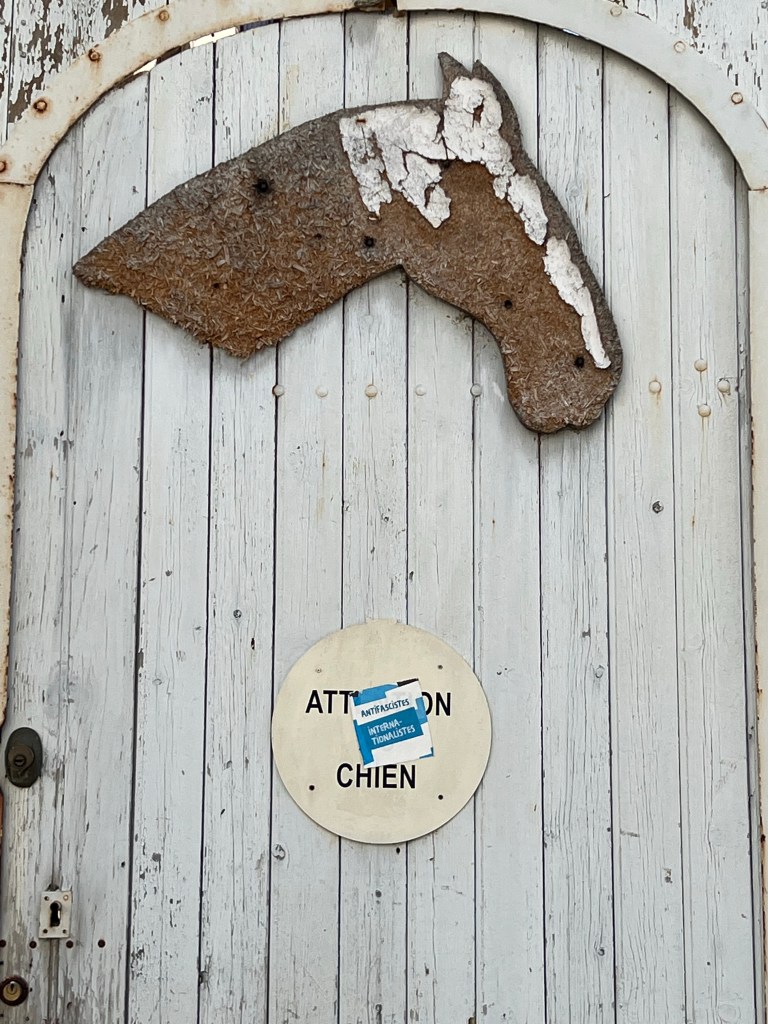J’ai referme mon blouson jusqu’au menton et je regarde surtout mes pieds. Pourtant, le chemin a ses artistes…alors je sors l’appareil pour ce coq a fière allure pose devant la maison.