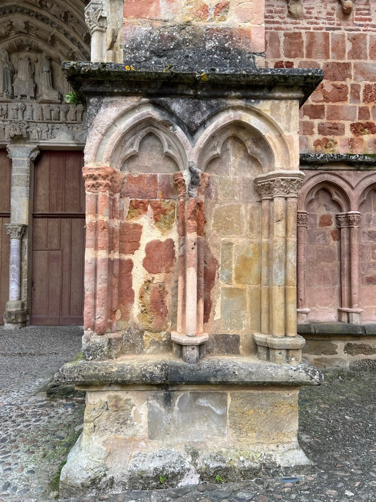 Assise devant l’eglise, la pluie décide pour moi. Apres un petit fromage/pain, il faut replier tout tres vite et c’est parti dans la tempete. Le vent et la pluie se dechainent. C’est un test d’impermeabilite grandeur nature pour les vetements !