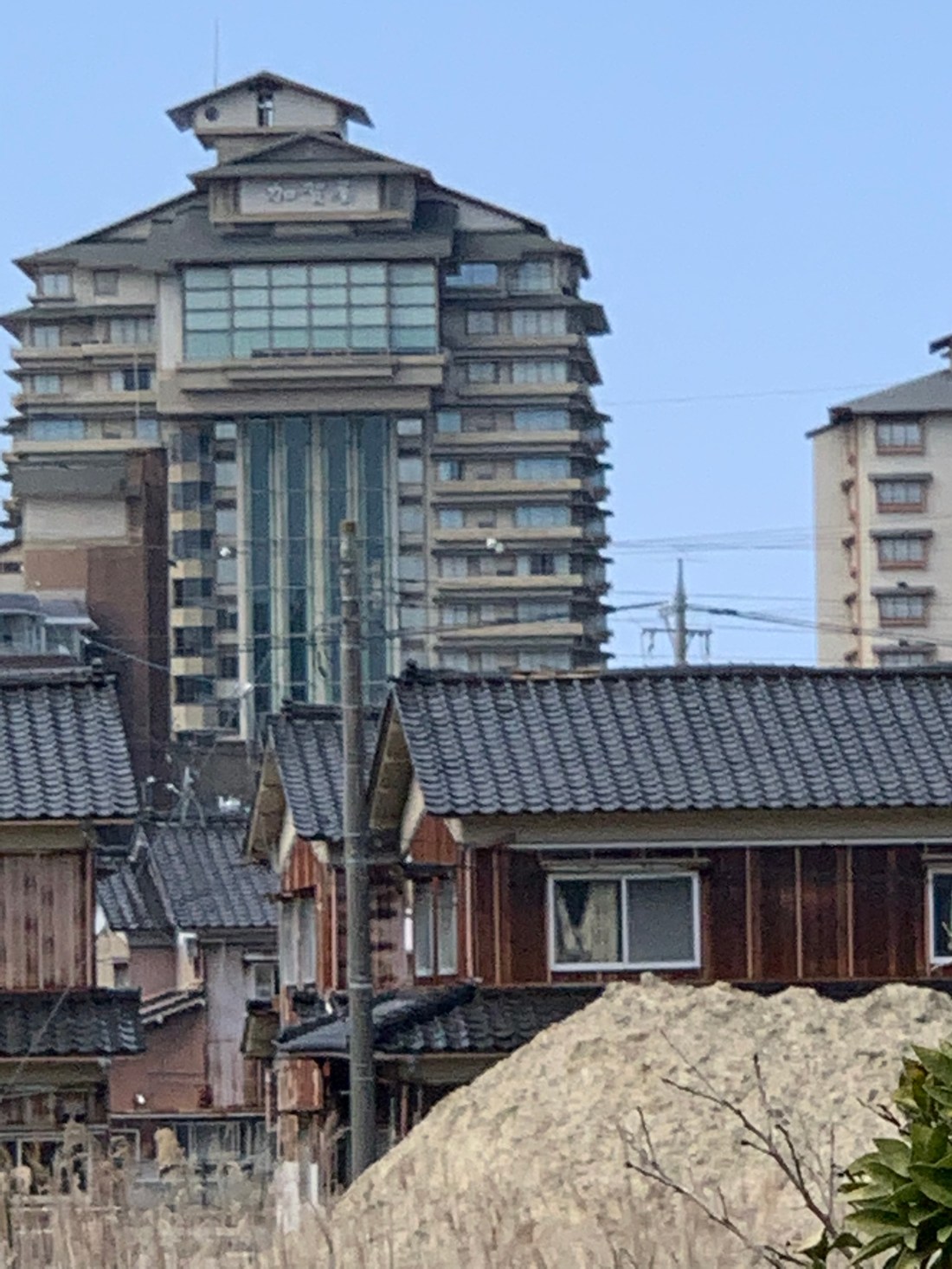 Voyager dans les trains… je suis maintenant dans un wagon « scenic », assise face au paysage qui défile. Interminables banlieues d’Osaka.