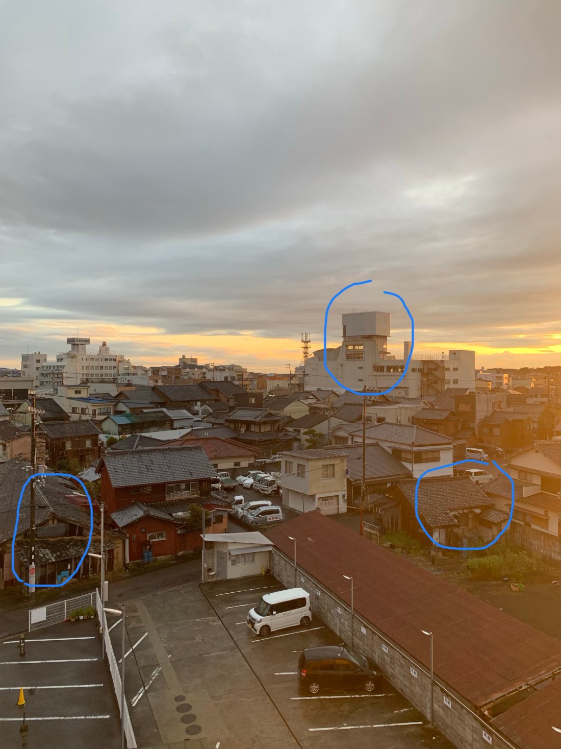 J’ai parie sur l’immeuble au centre de la photo et j’ai gagne.. il y a aussi les deux maisons…. et c’est le centre ville !