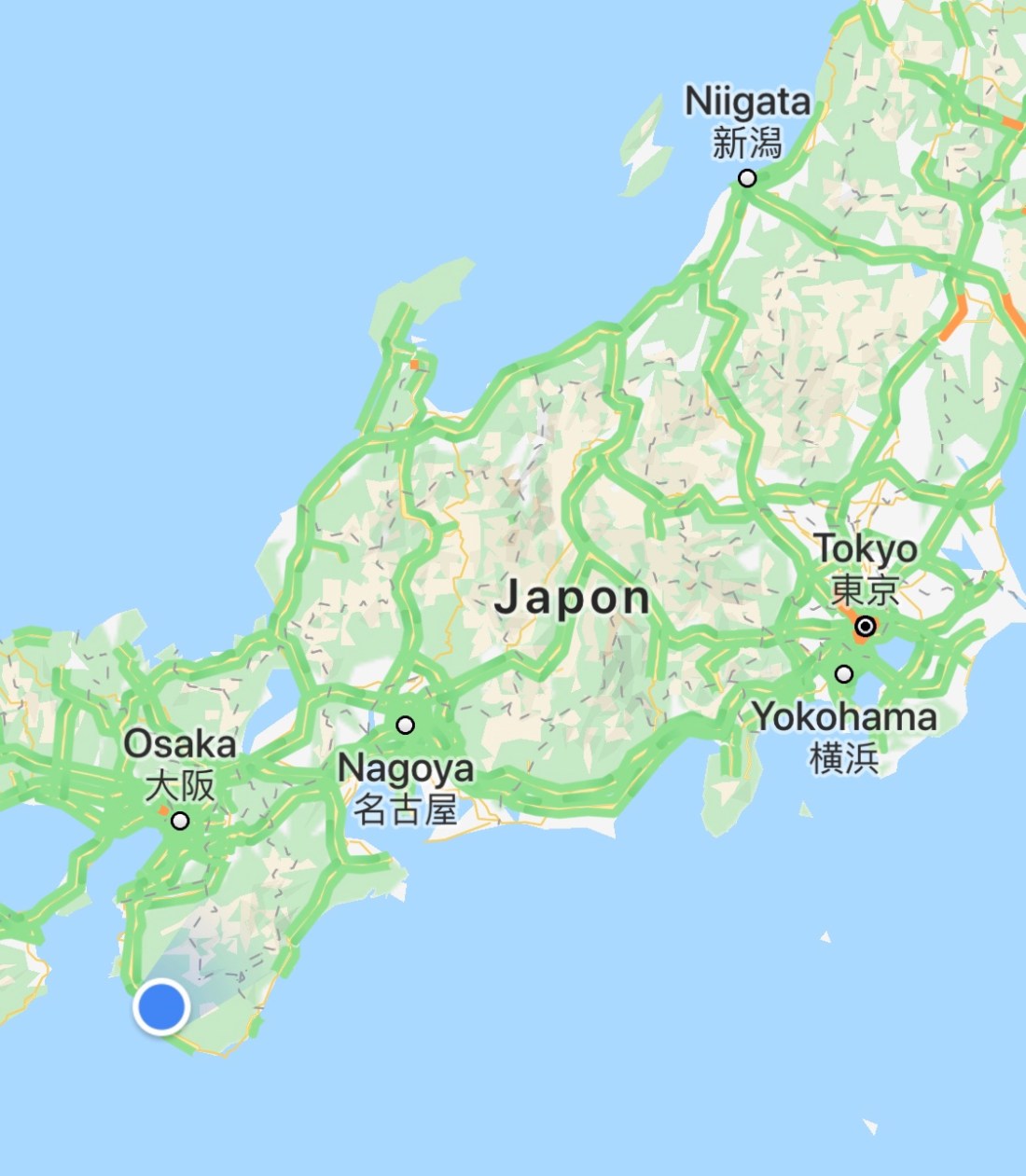 Mon voyage comporte trois trains et durera 6h30. Le Shinkansen va très vite mais les trains locaux avancent tranquillement a 50 km/h. Entre les deux, des plus ou moins express vous transportent a des vitesses très raisonnables… ajoutez a cela une géographie compliquée…
