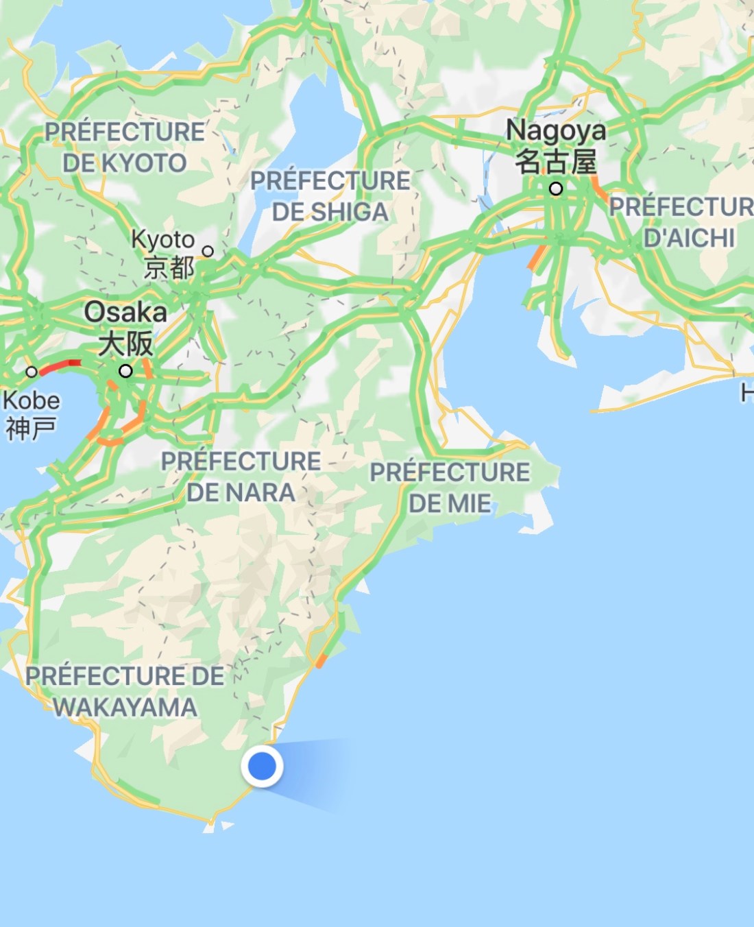 Arrivee a Tanabe, départ demain pour une randonnée de 6 jours sur le chemin de pelerinage Kumano Kodo.