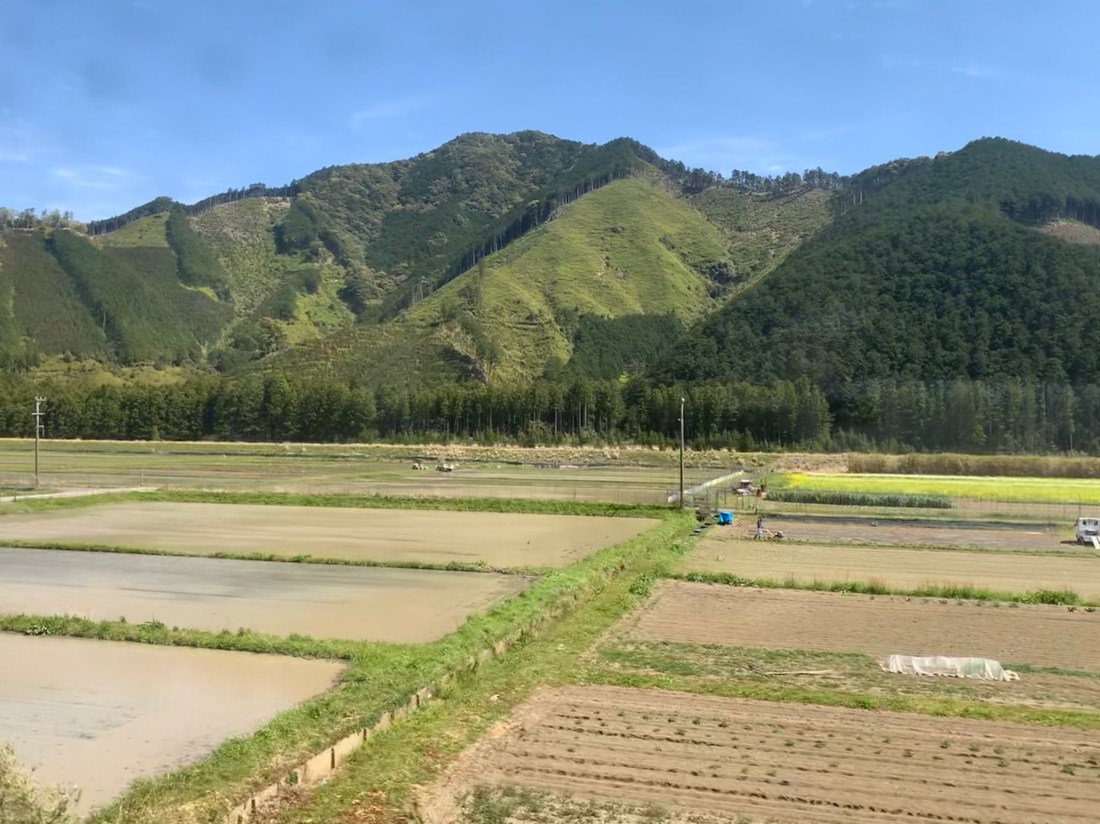 Installée dans le train suivant, la campagne sous la pluie défile devant moi: villages, rizières, forets de sapin et de bambous mêlés.
