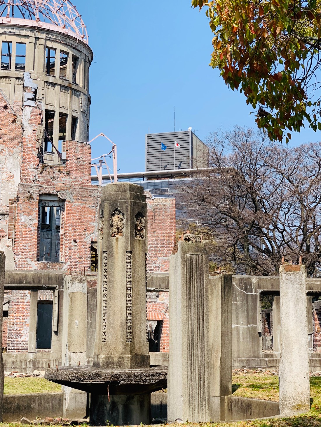 Un batiment emblematique de la vie de la ville avant la bombe a ete conserve, enfin .. ce qu’il en reste… au milieu d’un parc de la paix entoure de buildings flambant neufs..