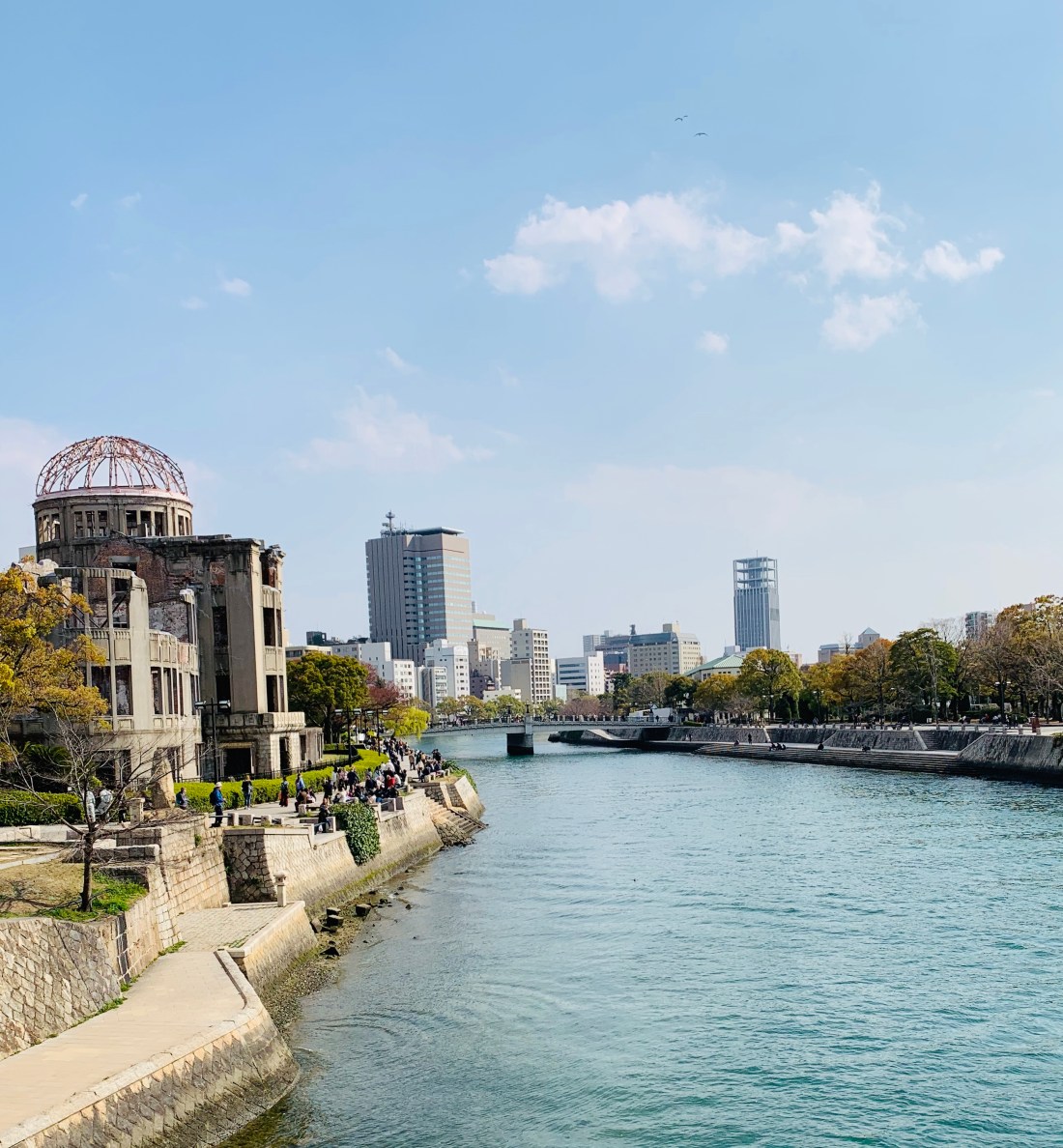 Arrivee a Hiroshima, changement d’ambiance. Toute la ville est centrée sur « ground zero », impact de la bombe, souvenir des victimes et du désastre… loin de la legerete d’Osaka.